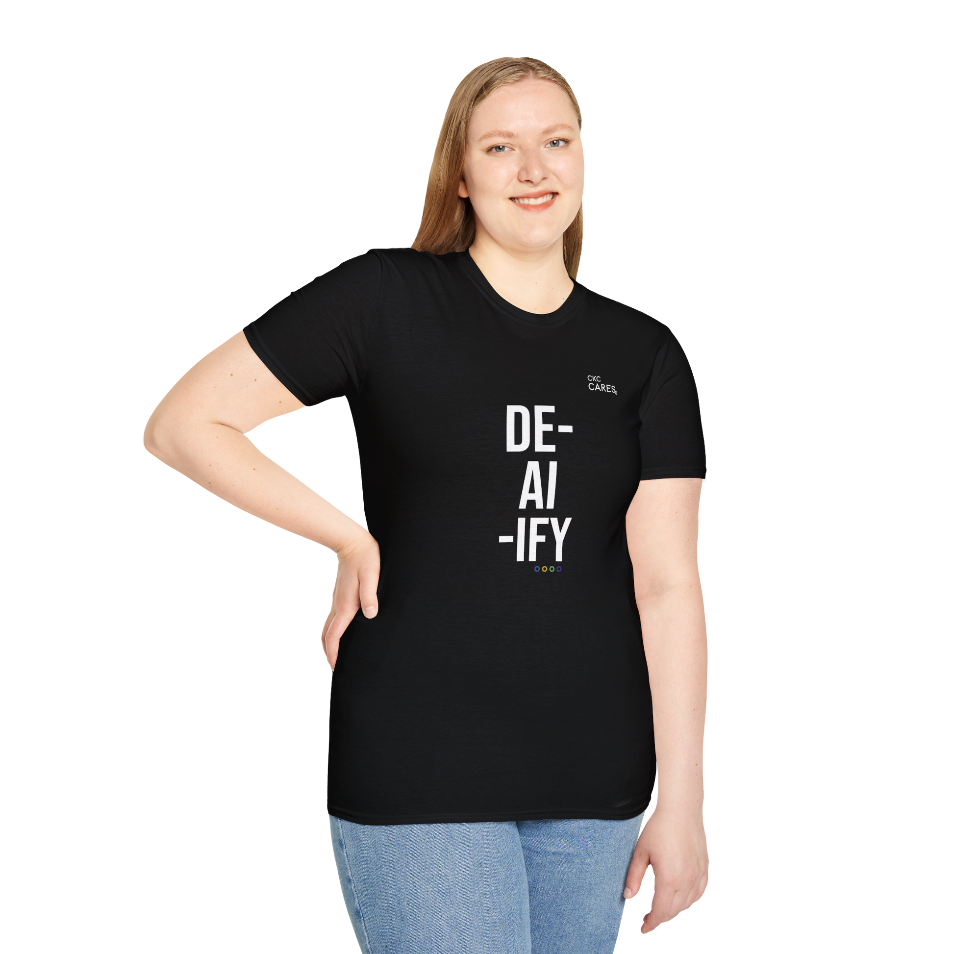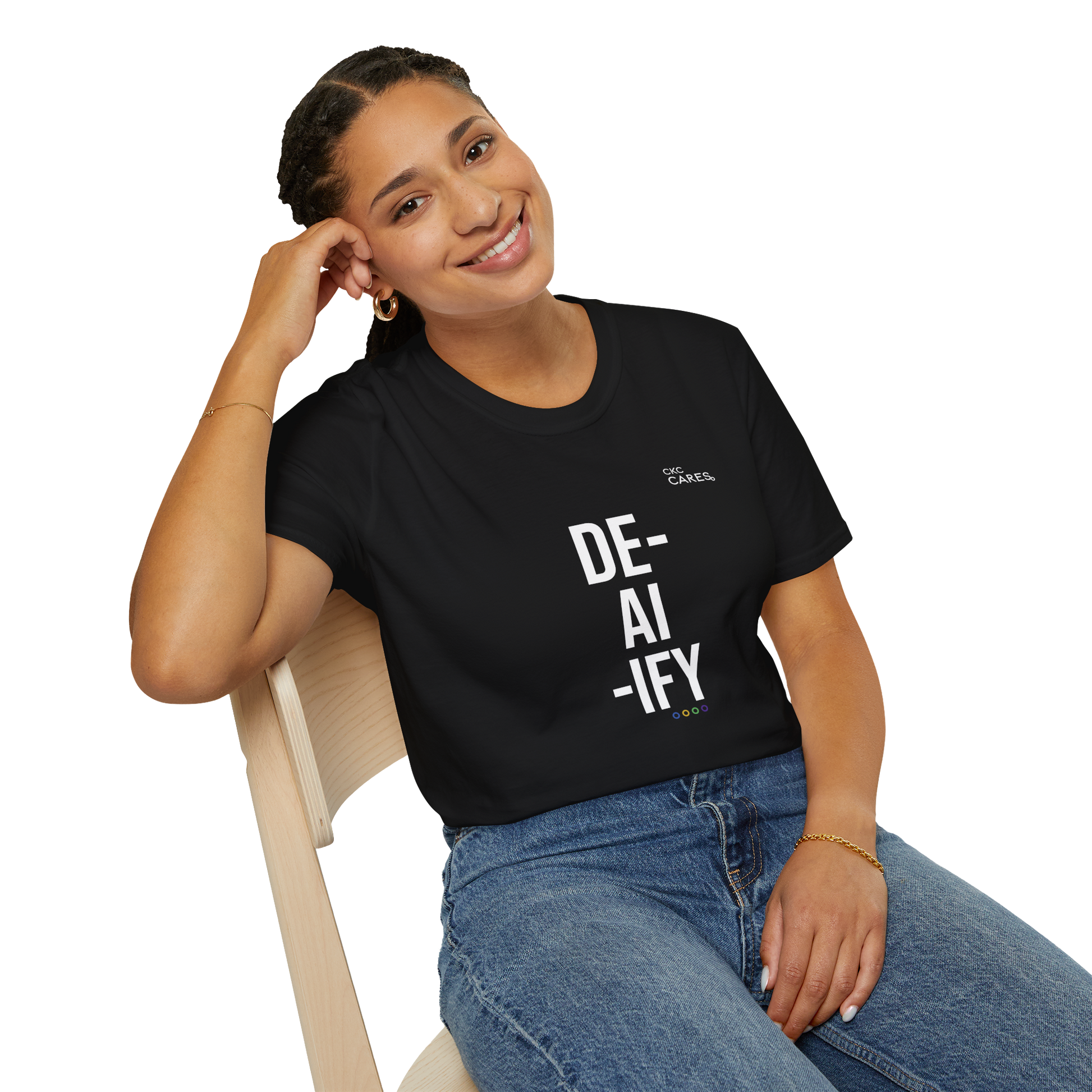 - DE‑AI‑IFY – RECLAIM YOUR MEANING: A grounding piece for anyone managing AI and digital change. It is a wearable pause button that keeps your values, relationships and sense of meaning visible in a world that runs on speed and automation.